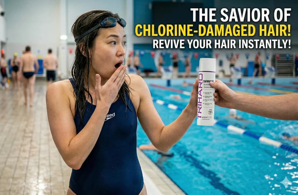 TRIHARD specially formulated solution hydrates and nourishes deeply—restoring natural moisture, repairing damage, and gently removing chlorine build-up—so you can dive in without worry and step out feeling refreshed.