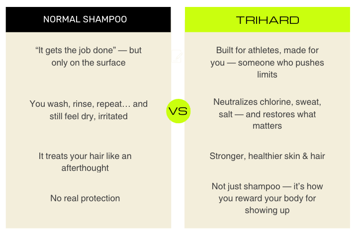 After long swim sessions, my skin used to feel tight and my hair dry. TRIHARD changed the game—now I feel fresh and hydrated after every training. It’s part of my race-day prep too.